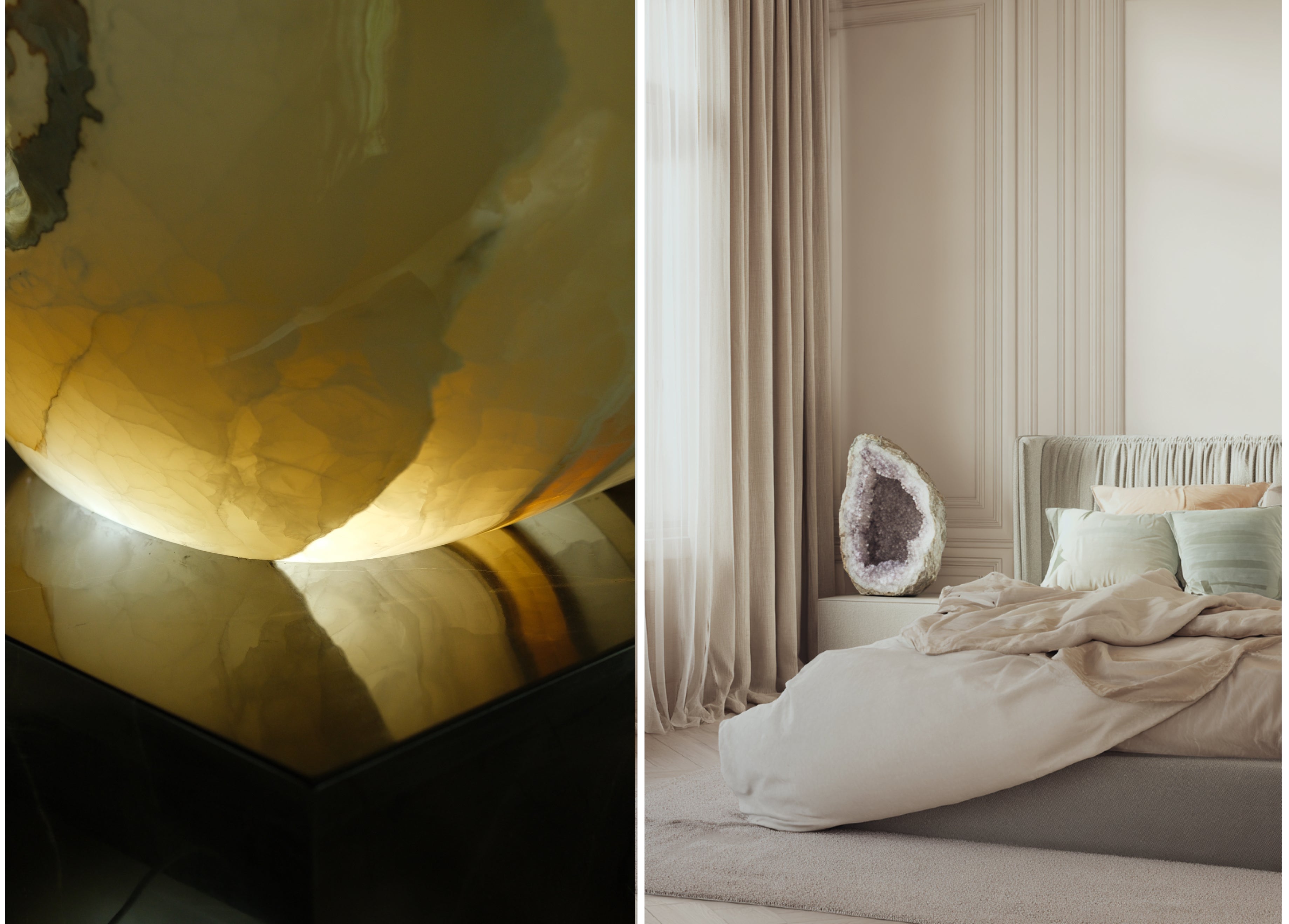 Work and rest unfold in spaces where crystal sets the tone. Desks, tables, and objects become more than furnishings — they are sculptural presences that bring clarity, balance, and refinement. Each piece defines a rhythm of focus and retreat within private interiors.